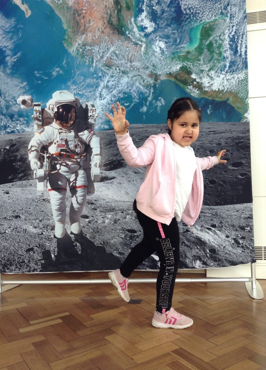 A pupil exploring the Moon landing through freeze frame drama, deepening her understanding of character and atmosphere before applying this knowledge in extended writing.