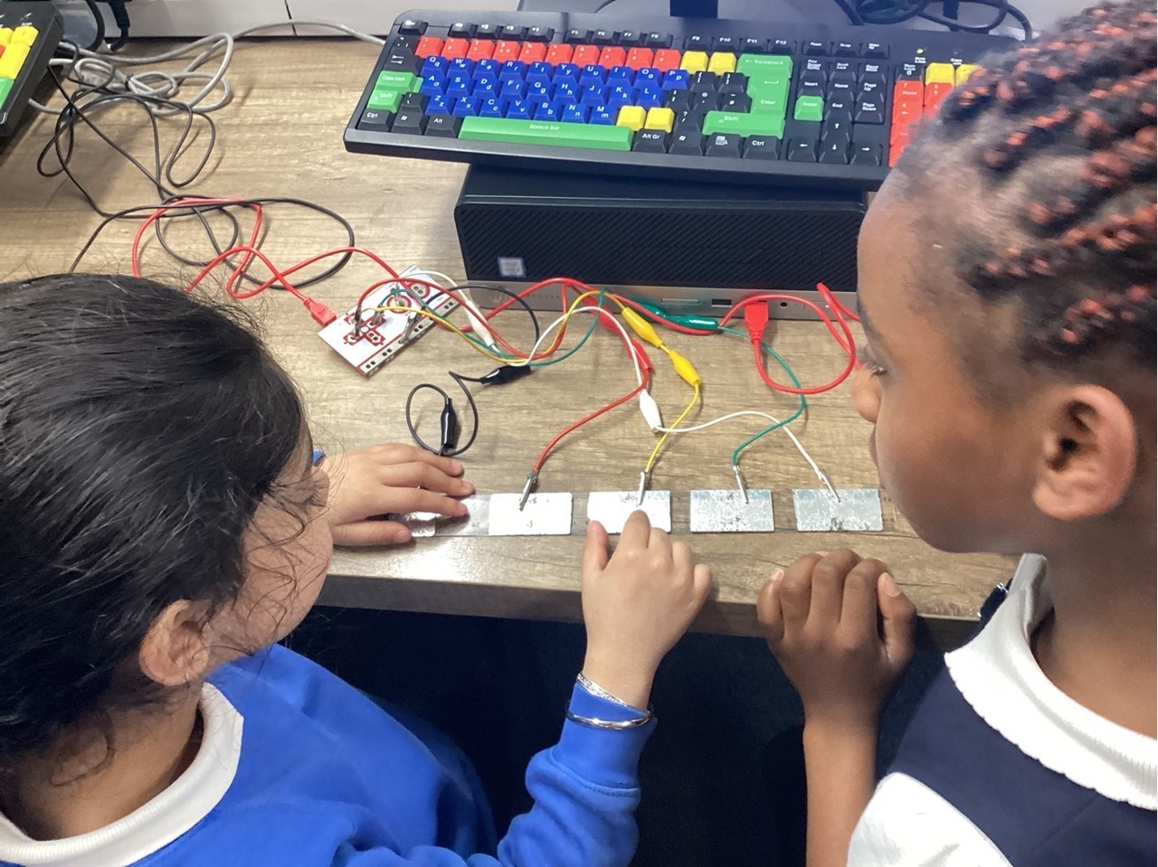 Year 1 and 2 took part in a conductive music workshop that combined Science, Music and Computing. We used 'makey, makey' machines to create music. We used the controls on the machine to make a sound. Next we were shown how we could use our bodies to make notes because electricity can pass through our bodies. We then had fun testing our different body parts. After that, we used ruler with tin foil on to create a mini piano and had a go at playing a piece of music together as a class.