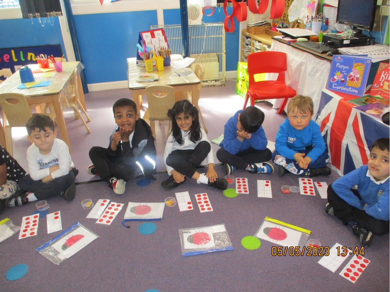 We also used our hand-eye coordination skills to place counters on crown templates, decorated Union Jack flags and did independent paintings of crowns.