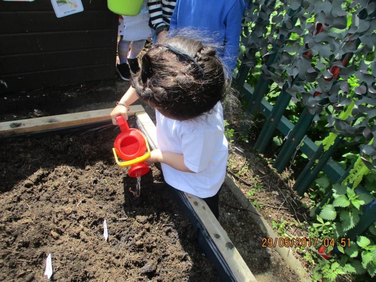 Because the weather this week has been so beautiful, we have spent lots of time tending to the vegetables that we have planted. Our potatoes are now growing very tall and our lettuce is coming along nicely. We have lots of herbs in our Paddock so we have been giving these lots of water too.