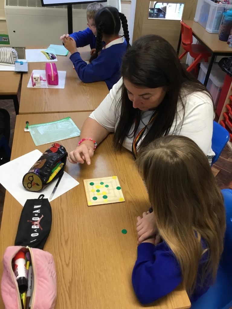 On Monday 10th October, Year 4 had a visit from Adam an Anglo Saxon historian. We spent the morning listening to gruesome and gory battle stories, trying on armour and helmets. After a short break, we began digging for artefacts (with real life metal detectors) and even played a traditional Anglo Saxon game of Nine Men's Morris.