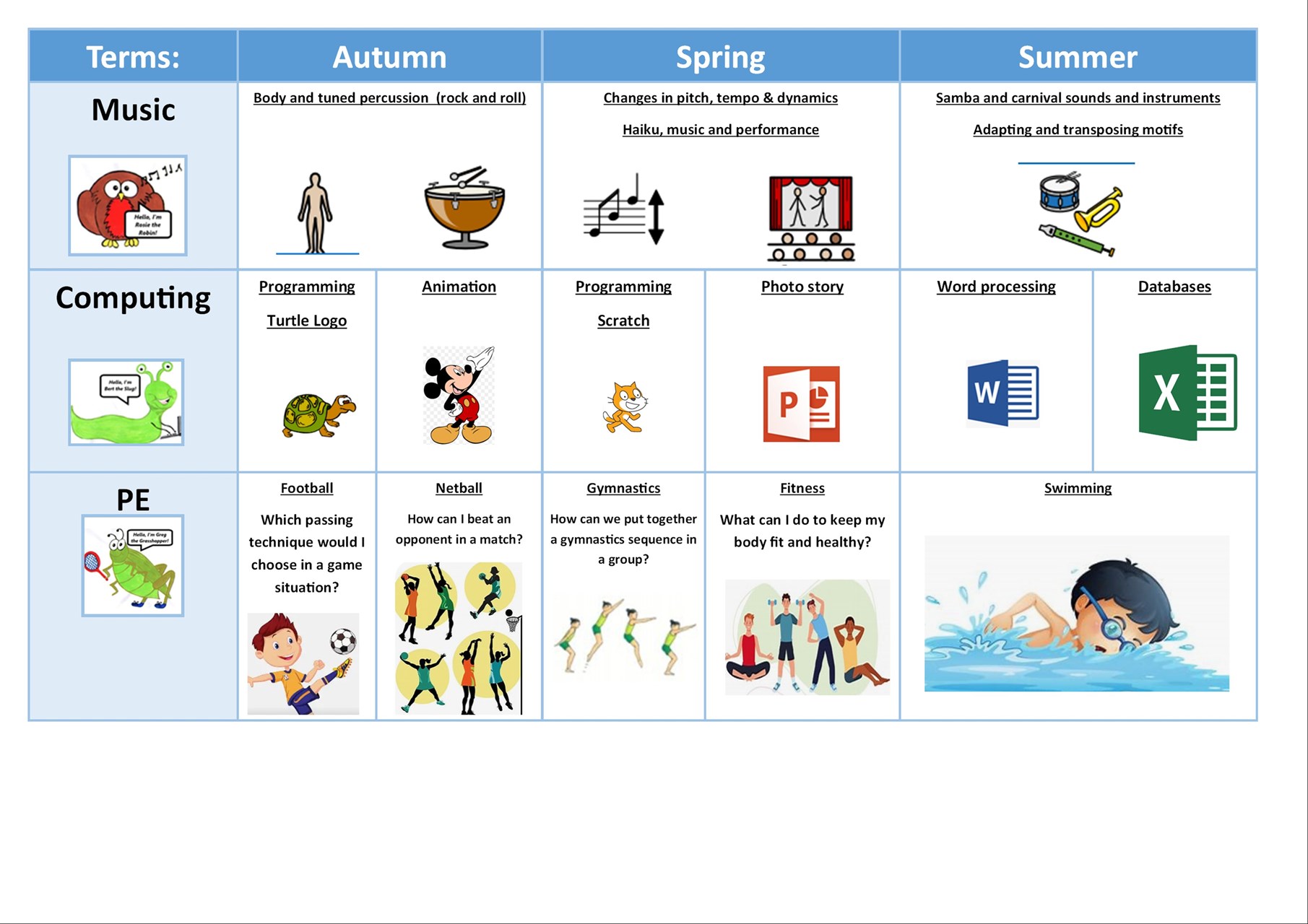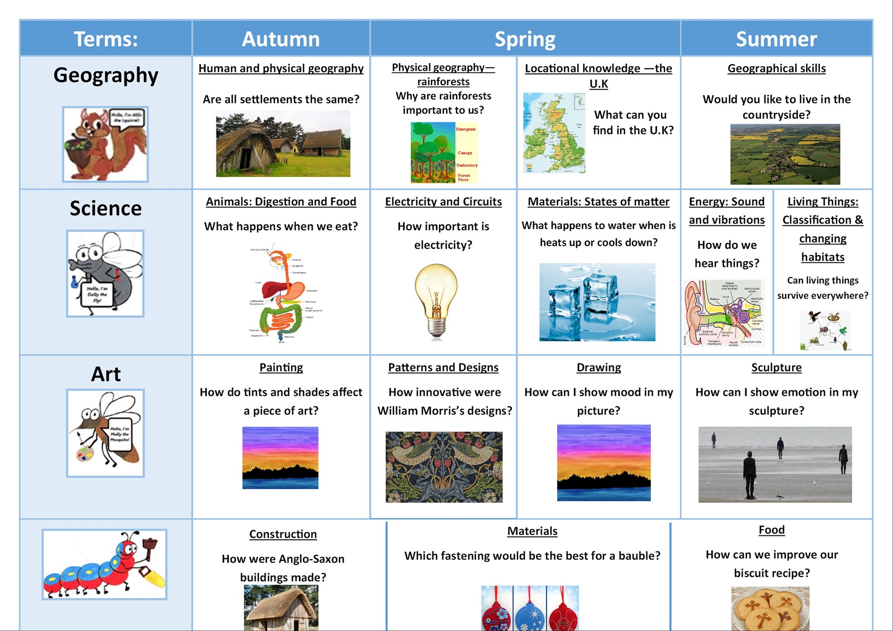 All Knowledge Organisers will be uploaded into the ‘Curriculum’ section of the school website and can be accessed to help support with homework. We ask that parents read through these Knowledge Organisers at home with their children. It is also useful for children to go back to previous Knowledge Organisers and revise these so that the information from previous learning is not forgotten.
