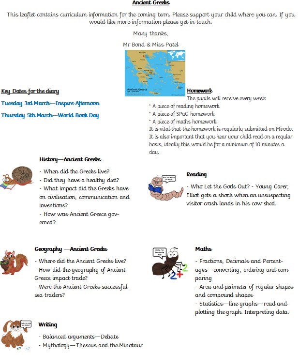 Parents are invited to view our Ancient Greek curriculum flyer, which highlights the learning taking place throughout this fascinating topic. As pupils explore Ancient Greece, they develop an understanding of communication through language, storytelling, and early democracy, examine the foundations of Greek civilisation, and explore ideas of creation through art, architecture, philosophy, and innovation. Learning is carefully linked across subjects to deepen knowledge, inspire curiosity, and help children recognise the lasting influence of Ancient Greece on the modern world.